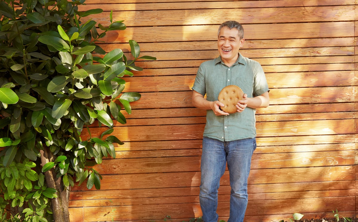 一走進木平台展覽空間,看見大門手把是熟悉的木頭餅乾造型,鄭啟聰提到,這是最早規畫時請台灣創作者宜紋所製作,來參觀的大人小孩都會主動把玩,它觸發了許多人小時候吃餅乾時開心、幸福的記憶,如同作品名字「記憶的滋味」,對鄭啟聰來說具有很重要的意義,就像是一個進入幸福狀態的開關,他開玩笑地說假如這空間哪一天不在了,也會保留餅乾門把。